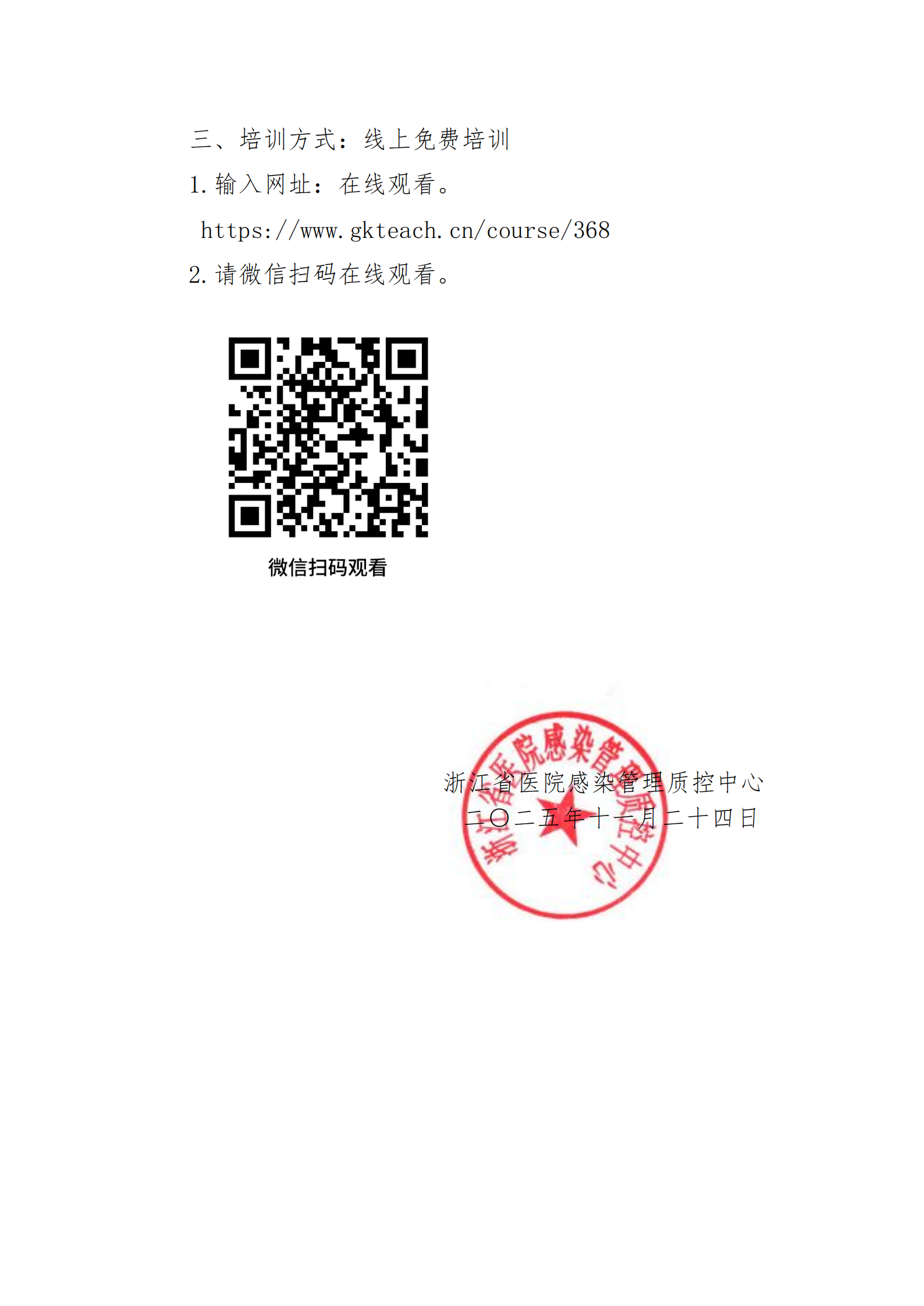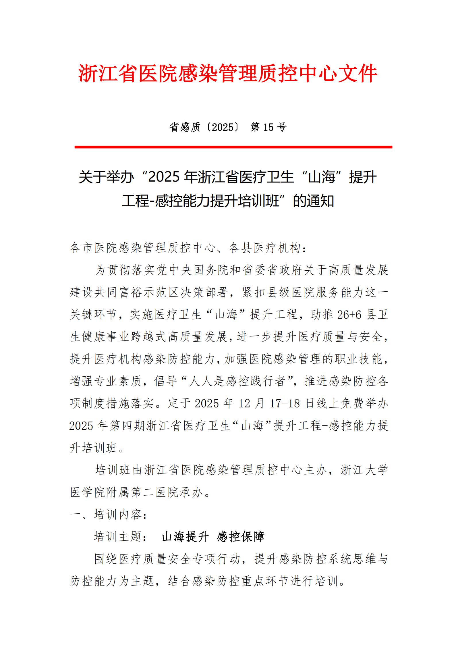 关于举办“2025 年浙江省医疗卫生“山海”提升工程-感控能力提升培训班”的通知